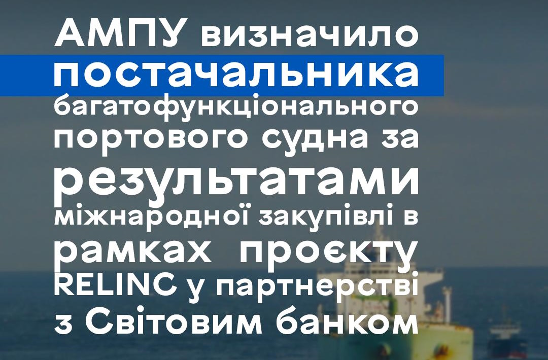 Державне підприємство «Адміністрація морських портів України» (АМПУ) завершило міжнародну закупівлю багатофункціонального портового судна в межах проєкту «Відновлення критично важливої логістичної інфраструктури та мережевого сполучення» (RELINC), який впроваджується у партнерстві зі Світовим банком.